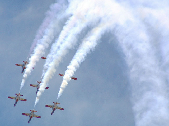 Describiendo un arco en el cielo al realizar un "looping" en perfecta formación.
