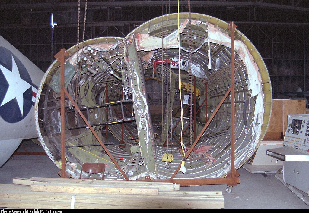 Sección del fuselaje de un KC97L en la que se aprecia la estructura de doble burbuja. Foto tomada en la Base aérea de Dover. Delaware. USA. 20 de Julio de 2001.